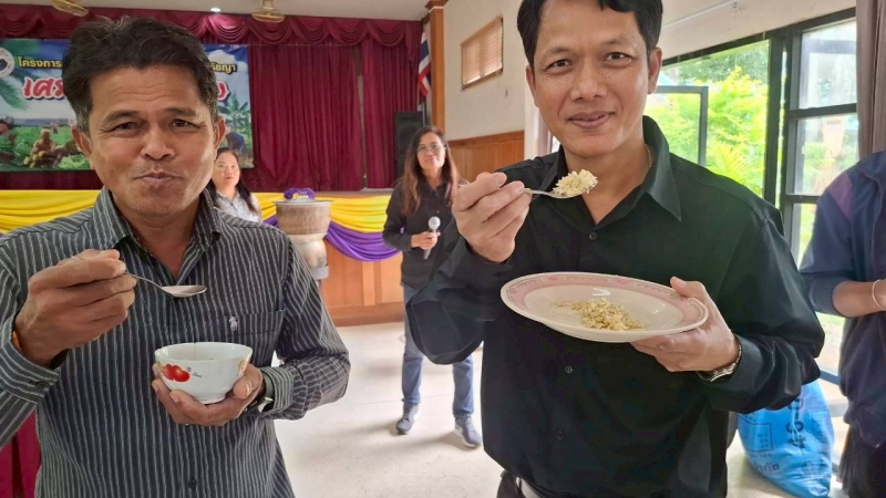อีกทั้งยังได้รับความอนุเคราะห์ จากทีมวิทยากรวิสาหกิจแปรรูปข้าว นำโดยคุณเกตน์สิรี กรวยสวัสดิ์ ประธานกลุ่มวิสาหกิจแปรรูปข้าวตำบลคูขาดอำเภอคง จังหวัดนครราชสีมา ในการฝึกอบรมโครงการส่งเสริมการดำเนินชีวิตตามหลักปรัชญาเศรษฐกิจพอเพียง การทำข้าวระยะเม่าให้แก่ประชาชนที่สนใจได้ทราบ